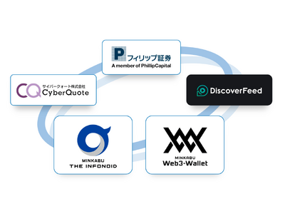 また、ミンカブとMW3Wは、当該ブロックチェーン基盤を活用して、フィリップ証券の100%子会社であるサイバークォート株式会社(以下「サイバークォート」、本社:東京都中央区、代表取締役:尾形雅樹)並びにDiscoverFeed株式会社(以下「DiscoverFeed」、本社:東京都港区、代表取締役社長:露木芳通)とデジタルツイン/会員権ビジネスを共同で行うことといたしましたので、併せてお知らせします。