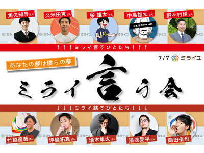 株式会社ミライユ(本社:東京都千代田区、代表取締役:岡田 侑也、以下ミライユ)は、7月7日(金)にTwitterのつぶやきから見つけた “ 夢 ” を、発信者と一緒に実現するためのイベント「 ミライ言う会 」を開催します。