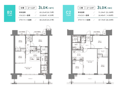 バルコニ一面積:11.44平方メートル ~29.78平方メートル