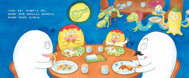 今回の最新刊では、ばけたくんファミリーが遊園地「バケバケランド」へ遊びに行きます。アトラクションで遊んだ後は、お待ちかねのレストランへ!さて、ばけたくんはどんな食べものに化けちゃうのかな~?