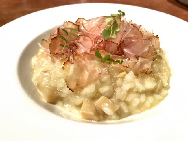 その後、一ヶ月間の氷温熟成と更なる燻製時間の延長、さらに3ヶ月以上の熟成によって「ベーコン節(R)︎」は完成しました。その過程で、原料10kgからわずか2.5kgの出来上がり量という、非効率的な製造過程を経験しましたが、試食の瞬間、その努力が報われました。「これは本当に美味しい」と全員が口を揃えました。「かつお節」と違って、そのまま口に含んでも味が抜けず、トリュフ代わりにサラダ、パスタ、卵かけご飯、リゾットなどにトッピングと、様々な料理にマッチすることを発見し、我々は「これこそが未来の食品」と確信しました。一部、事前に協力してくださった飲食店でも、実際、洋食・和食文化のどちらでも合う食材で、本当に美味しいと評価してくださっています。