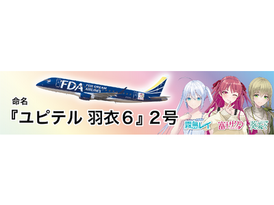 株式会社フジドリームエアラインズ(略称:FDA、本社:静岡県静岡市、代表取締役 社長:楠瀬俊一)と株式会社ユピテル(本社:東京都港区、代表取締役会長 兼 CEO:安楽 憲彦)は、FDA13号機(JA13FJ )のネーミングライツ取得に関する契約を締結し、同13号機を『ユピテル 羽衣 6』2 号(はごろもしっくす にごう)と命名しました。なお、同社によるネーミングライツ取得は、2022年11月のFDA16号機(JA16FJ)に続き2機目となります。
