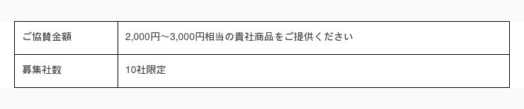 ※ご協賛いただいた貴社商品は、10名の【優秀賞】受賞者へ副賞としてお渡しします。「優秀賞(◎◎◎◎株式会社賞)」と記載します。 ◎には貴社名が入ります)