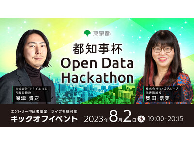 東京都が主催する都知事杯オープンデータ・ハッカソン2023のキックオフイベントが、2023年8月2日(水)に開催されます。イノベーションの最前線を歩む深津貴之氏(株式会社THE GUILD 代表取締役)と奥田浩美氏さん(株式会社ウィズグループ 代表取締役 CEO&Founder)がゲストスピーカーとして登壇します。本イベントは都知事杯オープンデータ・ハッカソンにエントリーした方限定のスペシャルイベントです。ご参加を希望される方は7月21日(金)までにエントリーまでにエントリーをお願いします。