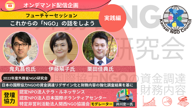 2023年7月19日に、NPO法人関西NGO協議会(所在地:大阪府大阪市,代表理事:三輪敦子)は、オンデマンド配信企画フューチャーセッション「これからの『NGO』の話をしよう」の動画を公開しました。