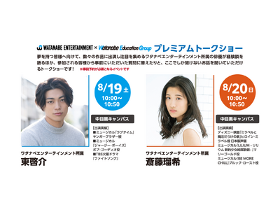 そして本イベントの最注目コンテンツとして、ワタナベエンターテインメント所属の俳優・東 啓介と、女優・斎藤 瑠希によるプレミアムトークショーが決定いたしました。(※事前予約制、定員になり次第終了)