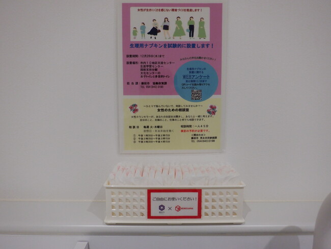 藤枝市内13箇所の地区交流センターにレッドボックスジャパン提供の生理用品を設置し、学生の皆様や地域住民の皆様に無料でご利用いただきます。