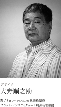アミコファッションズの大野氏は日本の立体裁断の第一人者です。彼が学んだ頃のアメリカはニューヨーク式の機能美に加え、パリ式の感性が注入された立体裁断技法が高度に熟成された時期でした。そのため彼がデザインする服には美しいシルエットと軽やかな着心地を併せ持っています。