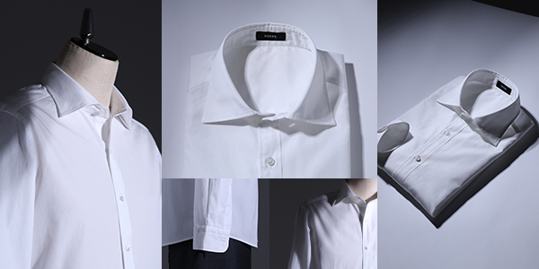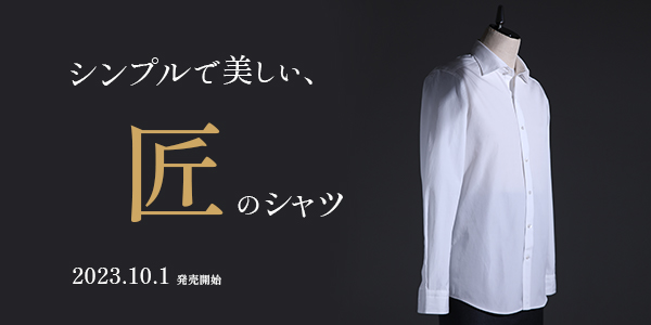 匠のシャツはフォーマルすぎないソフトな仕立てです。第1ボタンを外したリラックススタイルでも上品に見えるようにし、どのような顎の形とも違和感のないレギュラーカラーを追求しました。
