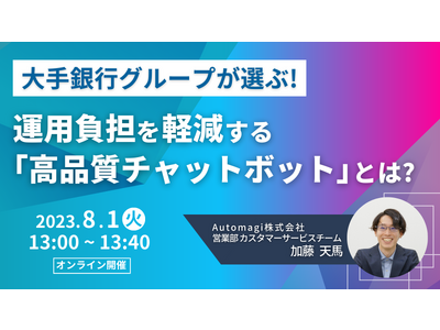 Automagi株式会社(本社:東京都新宿区、代表取締役社長:野呂 堅太郎、以下、Automagi)は、ウェビナー『大手銀行グループが選ぶ!運用負担を軽減する「高品質チャットボット」とは?』を2023年8月1日(火)13時より開催いたします。