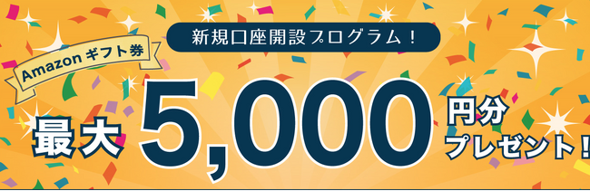 ~口座開設&ご入金額に応じて最大5,000円分のAmazonギフト券を全員にプレゼント!~