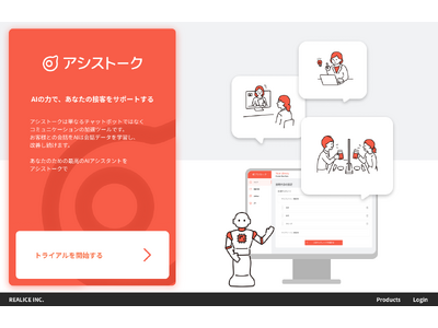 日本発の生成AIベンチャー企業、ReAlice株式会社(本社:東京都新宿区、代表取締役社長:船木駿、以下 当社)は、転移学習を活用したAIチャット型のカスタマーサポートツール「アシストーク」のβ版をリリースしました。