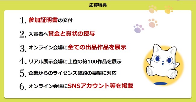 IPコンテストでは、以下の6つの特典・機会がクリエイターに与えられます。