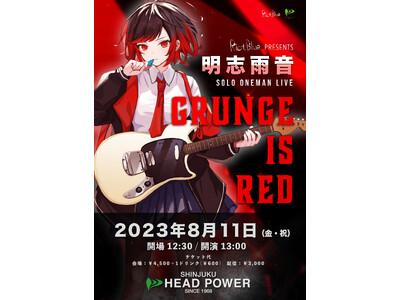 バーチャルワールドと現実世界を行き来するアーティストチーム『Riot Blue』は、リーダー兼プロデューサーでもある『明志雨音』をメインアクトに据え、”リアル”ライブ【GRUNGE IS RED】を開催いたします。