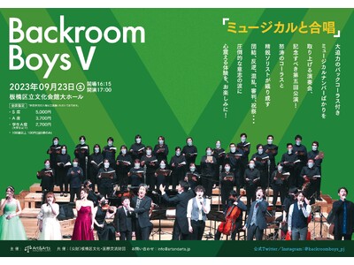 合同会社Art&Artsは2023年9月23日、コーラス付きミュージカルナンバーばかりを取り上げる演奏会「BackroomBoysV~ミュージカルと合唱~」を板橋区立文化会館にて開催します。