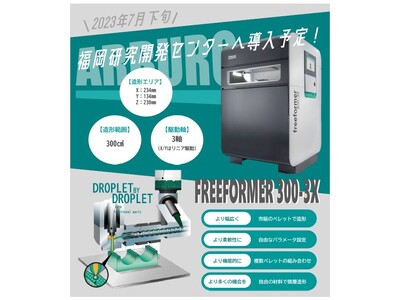 【ARBURG】FREEFORMER300-3X導入し従来の射出成形に使用されているペレット材が3Dプリント可能!2023年7月23日弊社福岡研究開発センターに設備搬入 設置完了。