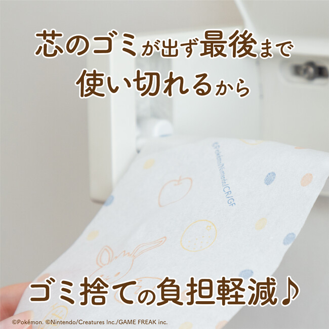 また、芯がないため使い終わった後に捨てる手間がなく、ゴミがトイレに溜まってしまう心配もありません。人にも地球にもやさしい省資源設計の商品です。