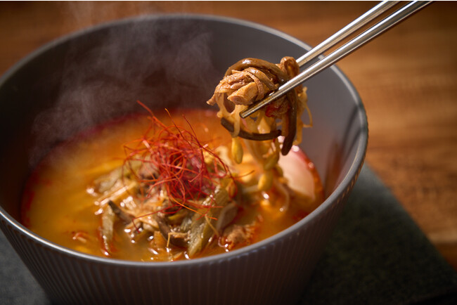 TAKUNABEの「深夜のユッケジャン」は、本場韓国の味をとことん追求し、ほどよい唐辛子の辛さと牛肉のコクと野菜の旨みがある、本格的なユッケジャンスープです。
