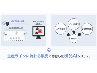 ・「迅速に」「高精度な」検品業務を行うことを可能にし、労働人口の減少や人手不足に起因する製造業の課題を解消します。人の目による誤検出を大幅に減少させることができるため、品質向上が期待できます。