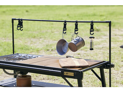 本製品は、3段階の高さ調整、パネル式のウッド天板とアルミ天板を採用、テーブル下のデッドスペースを解消するシェルフボードが特徴なロースタイルのキャンプにぴったりな多機能テーブルです。ユーザー様のスタイルに合わせて拡張が可能なハンガーラックやランタンハンガーも装備することで、テーブル周りのスペースをお好きにカスタム可能です。