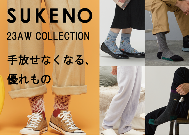 SUKENO SOCKS 23秋冬 COLLECTION」では、お気に入りの足元アイテムを見つけてほしい想いを込めて、「手放せなくなる、優れもの」をテーマにしています。