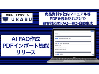株式会社UKABU(東京都渋谷区 代表取締役:丸山 隼平)が提供する営業トーク支援ツール「UKABU(ウカブ)」 は、米OpenAIによる「ChatGPT」を活用したFAQ作成が可能な「UKABU AI FAQ機能」に、PDFインポート機能を追加リリースしたことをお知らせいたします。