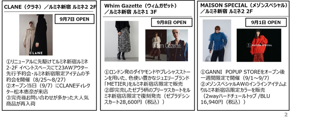 「LUMINE & NEWoMan NEW SHOP OPEN 2023 AUTUMN」