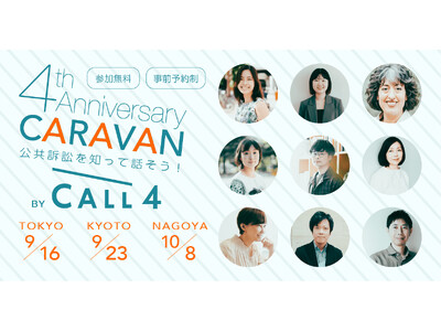 日本初(※1)の公共訴訟支援に特化したウェブプラットフォームCALL4(コールフォー)(運営:認定特定非営利活動法人CALL4、代表理事:谷口太規)は、正式リリース4周年を記念して東京・京都・名古屋で社会課題の解決をめざす公共訴訟を「知って」「交流する」イベントを開催いたします。いずれも参加は無料。東京、名古屋、京都それぞれに異なるプログラムを組んで、スペシャルゲストもお招きします。
