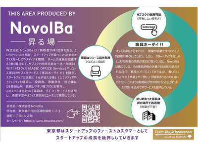 スタートアップの成長ステージに合わせたオフィス空間と家具の提供、挑戦者に光を当てるメディア『WITH』を運営する株式会社NovolBa(東京都渋谷区、代表取締役:鄧 雯 以下、当社)は、東京都が設置する"SusHi Tech Square" の1階エントランス空間構築において、当社のオフィス家具サブスクリプションサービス(以下、サブスク)「家具ホーダイ!!」が採用されたことをお知らせいたします。廃棄予定のオフィス家具を再利用し、来場者が寛げる空間を構築した本スペースは、千代田区丸の内3丁目8番3号にて、2023年8月30日からご利用いただけます。