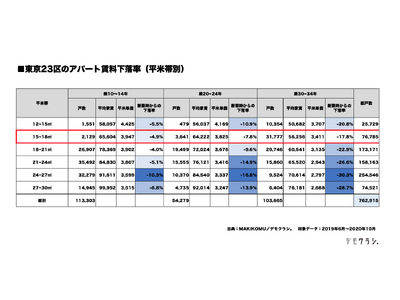 15~18平方メートル の下落率は17.8%と12.5%もの差がある結果となりました。