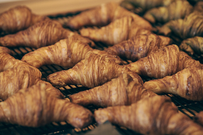 12層まで少なくすることにより外はザクザク食感、中はバターの香りが広がる口溶けの良いクロワッサンに仕上げています。
