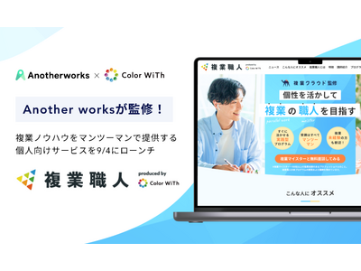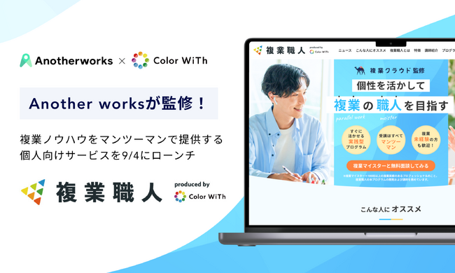 複業したい個人と企業や自治体を繋ぐ、総合型複業マッチングプラットフォーム「複業クラウド」を運営しているAnother works(所在地:東京都港区、代表取締役:大林尚朝)は、2023年9月4日(月)にColor WiTh株式会社(本社:東京都中央区、代表取締役:若色広大、高橋範慈)がローンチした個人向けサービス「複業職人」の監修を務めたことをお知らせいたします。また、これを記念し9月26日19時から複業希望者向けにウェビナーを開催いたします。