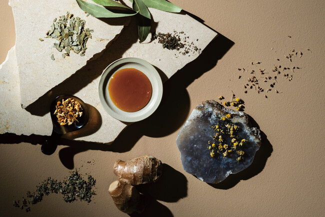 ハーブにはすっきりとしたその香りから、喉だけでなく、身体に寄り添ってくれると言われるユーカリを中心に、たっぷりの生姜、ペパーミント、柚子、カモミール、セージ、アニスを調合。味と香りから心身ともに健やかさを呼び込んでくれるはちみつを目指しました。