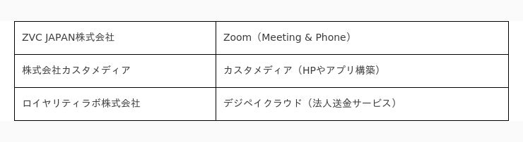 第1弾として、ZOOM Meeting 3ヶ月無料優待や、スペースマーケットビジネス利用が初回20%オフ、カスタメディアのシェアサービス構築に関わる初期費用が30%オフなど、さまざまな特典を用意しており、当協会会員サービスのより一層の事業成長へ貢献して参ります。