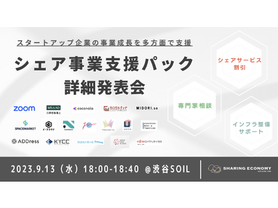一般社団法人シェアリングエコノミー協会(代表理事:上田祐司、石山アンジュ)は、2023年9月13日より、法人会員約380社(*1)に対し『シェア事業支援パック』を提供開始します。