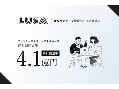 「オルタナティブ投資をもっと身近に、効率的に」を掲げ、世界水準のオルタナティブ投資ファンドへのアクセスと投資を可能にするデジタルプラットフォームの構築を進めるLUCAジャパン株式会社(東京都千代田区、代表取締役シデナム慶子)はこのたび、みずほイノベーション・フロンティア株式会社をリード投資家としてプレシリーズAラウンドを実施し、北陸地域ベンチャー投資事業有限責任組合、AZファンド大黒1投資事業有限責任組合、既存投資家であるFINOLAB1号投資事業有限責任組合1号のベンチャーキャピタル4社及び個人投資家4名に対する第三者割当増資により、総額約1.8億円の資金調達を行いました。これにより、創業以来の資金調達累計額は約4.1億円となりました*。