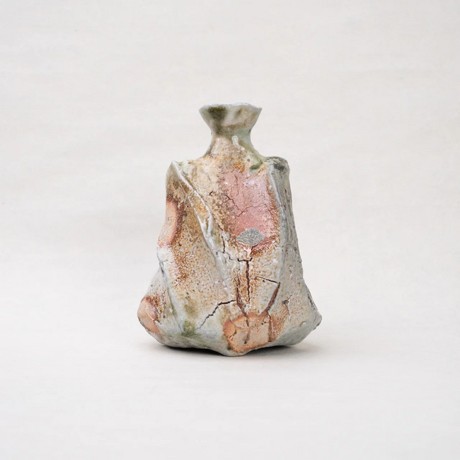 鎬の大胆なカットが眩しい徳利で、シャープに尖った肩が斬新な造形です。 伝統を受け継ぎながらもモダンな現代の伊賀デザインが特徴的で、 穴窯で焼成された力強い表情に、豪快な土の動きが美しい逸品。