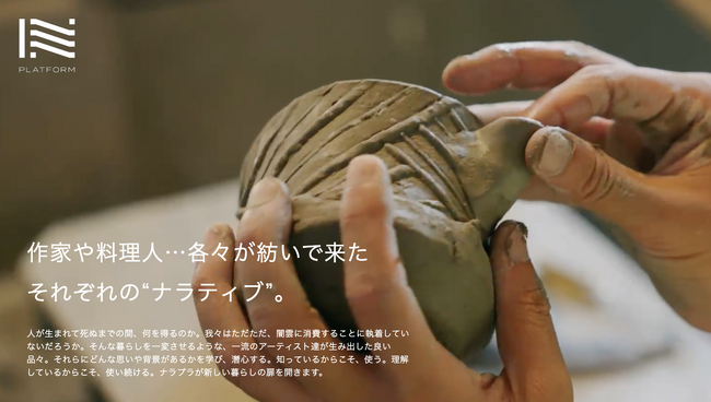 具体的には、作家や作品に出会えるEコマースのプラットフォーム「Narrative Platform(ナラティブ・プラットフォーム)」を展開していますが、この傘の下には、特別に創られた作品(器)を観て購入できる「WARE(ウェア)」というサービスがあります。このほか、作品(器)を愉しむための一流シェフによる冷凍グルメ「FROZEN(フローズン)」や、作品の源流に触れる旅「TRAVEL(トラベル)」など、立体的に伝統工芸を体感できるサービスを今後拡充していく計画です。こうした様々なサービス展開を推進する中で、物語を起点にした新たな購入体験という概念が広がり、ナラティブ・プラットフォームが通称