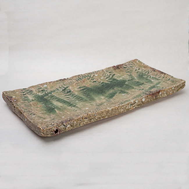 伊賀の伝統と品格を受け継ぎながら、ダイナミックで独創的な造形表現に挑戦している作品。 土味とビードロ釉のハーモニーが美しいうつわ。載せるだけで充分おもてなしの演出が出来る逸品。