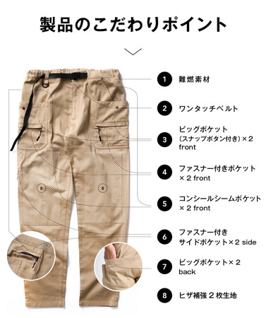 今回取り扱う焚き火パンツは、キャンプやアウトドア愛好者の声を真摯に取り入れ、長い時間のリサーチとテストを繰り返して開発しました。難燃素材の採用で焚き火の周りでも心地よく過ごせること、多機能ポケット配置で日常のアクティビティをサポートします。このパンツとともに、皆様のキャンプ体験がより一層豊かになることを心より願っています。