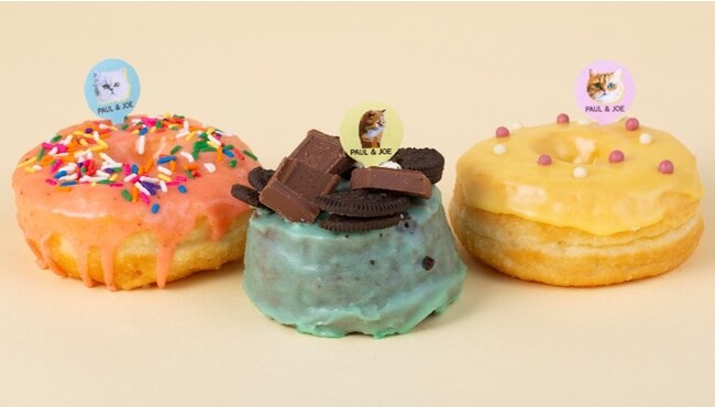 原宿で人気の「The Little BAKERY Tokyo」のドーナツがPAUL & JOEのネコのデザインで登場します。フレーバーはストロベリーレモネード、ミントチョコレートチップ、パッションフルーツ&マンゴーのカラフルな3種類です。初夏限定の人気商品ミントチョコレートチップドーナツを今回特別にPAUL & JOE DINERでご購入いただけます。