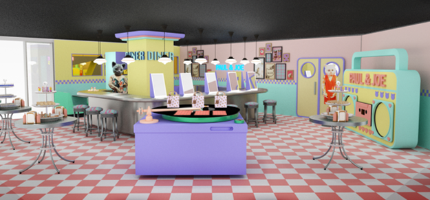 ポール & ジョーのレトロキュートな世界観でカラフルなメイクアイテムやダイナーのスイーツメニューが楽しめる期間限定のダイナー。