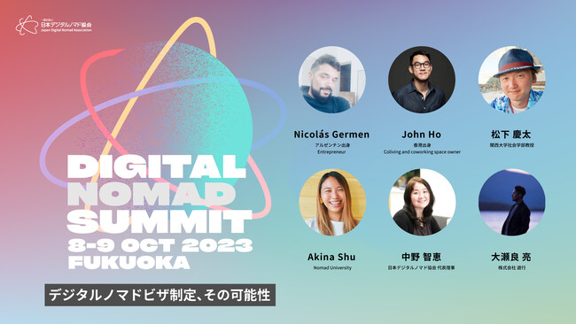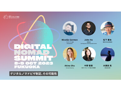 デジタルノマドの国内受入環境の整備や情報発信等を行う一般社団法人 日本デジタルノマド協会(代表理事:MOE 中野智恵、松川哲也、英名:Japan Digital Nomad Association 以下 JDNA、所在地:秋田県三種町)は、デジタルノマドの市場拡大と受け入れ環境の整備を目指し、2023年10月8日(日)・10月9日(月)に「第1回デジタルノマドサミット」(以下「本イベント」)を福岡市で開催します。初の開催となる本年は「デジタルノマドビザ制定、その可能性」をテーマにトークセッションを実施し、本日より参加申込の受付を開始します。