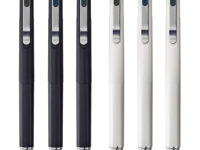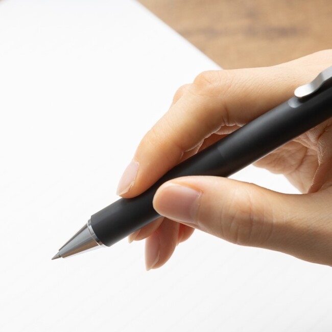 ボディは六角形と丸形を組み合わせた特別な形状で、自然と手にフィットするiD設計を継承し、金属製クリップとペン先を採用、上質感溢れるスタイリッシュなデザインとなっています。またスライダーは全体のデザインにマッチしたミニマルな形状で、小さくても操作しやすいエラストマー製です。ボディ色はブラックとホワイトの2色、インキ組み合わせは3パターンの全6種のラインアップで発売いたします。