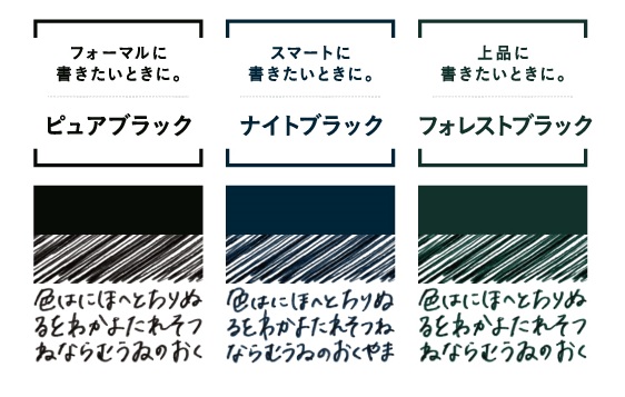 インキ組み合わせに関しては、「使用頻度の高い黒系が2色ほしい」、「赤は使用したい」などのユーザーニーズをふまえ、3パターンをご用意いたしました。