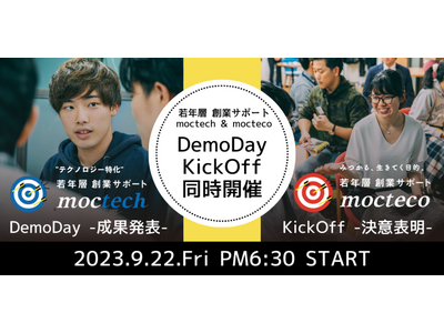 2023年6月から新しくスタートしたテクノロジー特化の創業支援プログラム「moctech(モクテック)」のDemoDay(デモデイ)と、2023年9月からスタートする創業支援プログラム「mocteco(モクテコ)」第6期KickOff(キックオフ)のイベントを同時開催します。