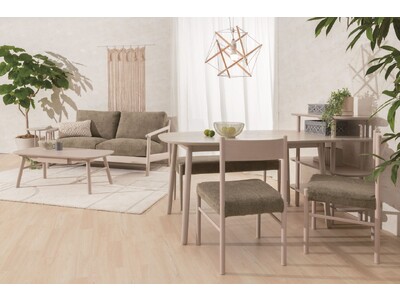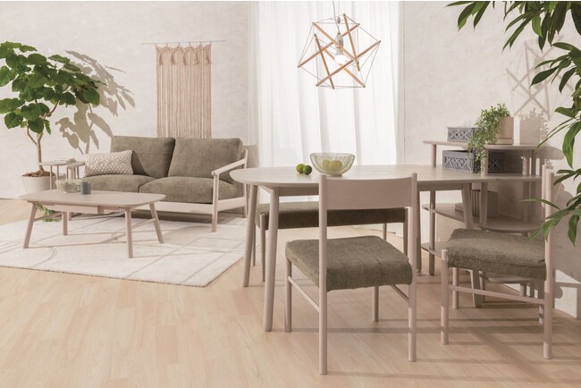 北欧テイストの家具の販売が好調の中、消費者の傾向はより上質で素材に拘った家具のニーズが高まっています。また、家具から小物を含めたコーディネートを望む声も多く、今回トータルコーディネートシリーズとして「MADOKA」を開発しました。