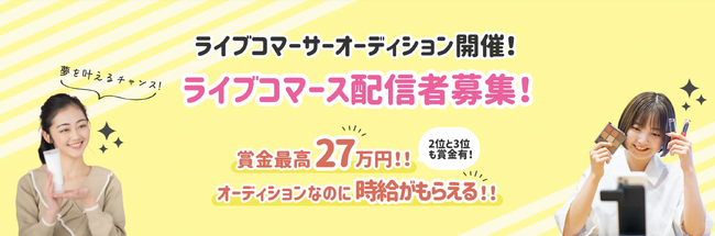 株式会社カウメル(本社:渋谷区、代表取締役:中村 努)では、オーディション時点から時給が発生するライブコマーサーオーディションを開催いたしました。