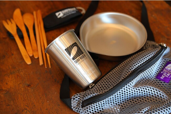 来場者には、飲食の際に使用する”お気に入りのカトラリー等”の持参を呼びかけるほか、ローカルマルシェのフード提供は、来場者が持参した食器類での提供等、出店者及び来場者の双方の協力のもと、「ゴミゼロ」イベントの実現を目指します。また、音響機器の電源はソーラー発電機を使用する等の環境配慮を行い、当日はアウトドアメーカー協力のもと、タンブラーやお皿、カトラリー等の販売も行います。※画像はイメージです