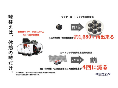 そこでこの度、人の介在を要するワイヤーカートリッジの交換を最小限にするため、従来のカートリッジ容量の約7倍をセットできる「大容量ワイヤー供給システム」を開発いたしましたので、マックス株式会社の協力を得て様々な建設現場でのテスト提供を開始いたします。